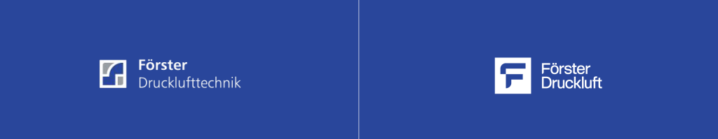 In allen rechtlichen Dokumenten und Verträgen führen wir selbstverständlich weiterhin unsere vollständige Firmierung „Förster Drucklufttechnik GmbH“. Die verkürzte Form „Förster Druckluft“ verwenden wir in der Gestaltung, weil sie gefälliger wirkt und transportiert, worauf es ankommt.